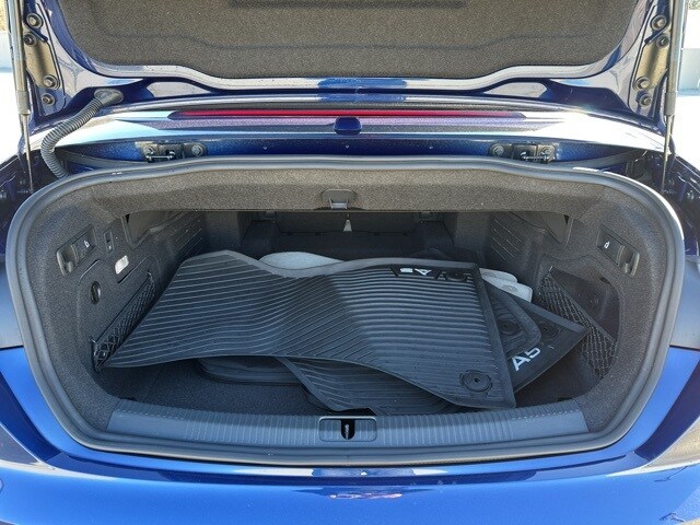 Second, upfront interior storage is nearly nonexistent. There appears to have been only a halfhearted attempt to provide in-console storage, which amounts to a tiny, shallow bin that has only a partially enclosing lid—one that doesn’t fully conceal the few articles one is able to fit in it. And unlike other cars in this class, there’s no dedicated compartment in which to store sunglasses, forcing you to be creative with where you choose to stow them. On top of all that, the cup holders are placed so close to the center dash controls that they can barely hold anything larger than a small water bottle or a medium size drink before interfering with the use of those controls. So no Big Gulps allowed in this A5’s cozy cockpit!