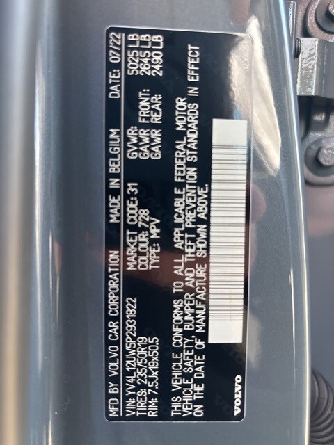 IMPORTER'S SUGGESTED LIST PRICE P.O.E.: $ 42,750.00 Plus Features Front Grille, High-Gloss Black Mesh and Lower Outer Grille High Gloss Black Window Trim High Gloss Black, Integrated Roof Rails Laminated Panoramic Moonroof w/ Power Sunshade LED Front Fog Lights Front Park Assist, Rear Standard Removable / Folding Load Floor with Grocery Bag Holders Power Folding Rear Head Restraints (outer positions) HomeLink Garage Door Transmitter Driver Assist 1,800.00 Pilot Assist Driver Assistance System with Adaprive Cruise Control 360 Surround View Camera Climate Package 550.00 Heated Rear Seats Heated Steering Wheel Metallic Paint 695.00 Power Operated Tailgate 200.00 19" 5-Spoke Black Diamond Cut Alloy Wheel 800.00 Destination Charge 1,095.00 Total Suggested Retail Price: $ 47,890.00. 2023 Volvo XC40 B5 Plus Dark Theme AWD Automatic with Geartronic 2.0L I4 Turbocharged DOHC 16V LEV3-ULEV70 Thunder Gray Metallic Certified. Volvo Certified Pre-Owned Details: